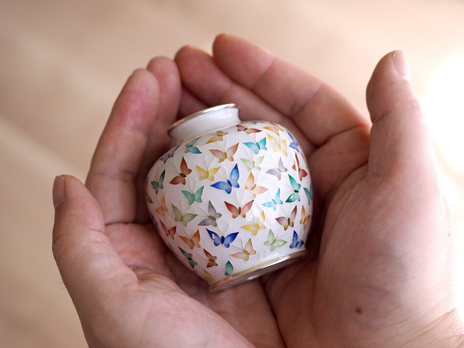手のひらに収まる小さな世界に、尾張七宝ならではの奥行きと色の重なりを凝縮しています。