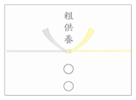 表書き例:志、御仏前、御霊前、粗供養 等