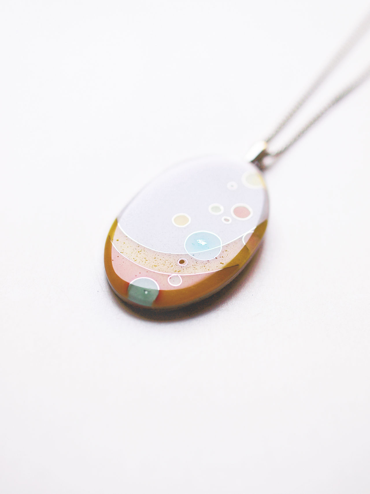 カラフルな色彩で、こころ躍るような気分にマッチするペンダントです。