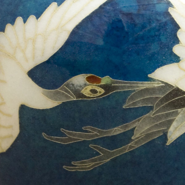 古来からの日本の伝統的画題である二羽の鶴をモチーフとした、落着きと気品がある作品です。