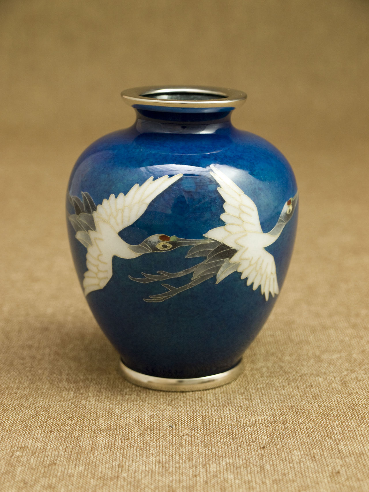 3寸玉形 藍地双鶴 花瓶 予約受付中