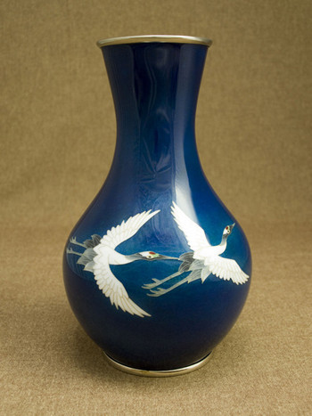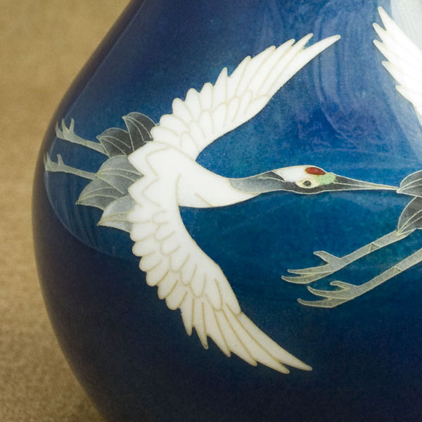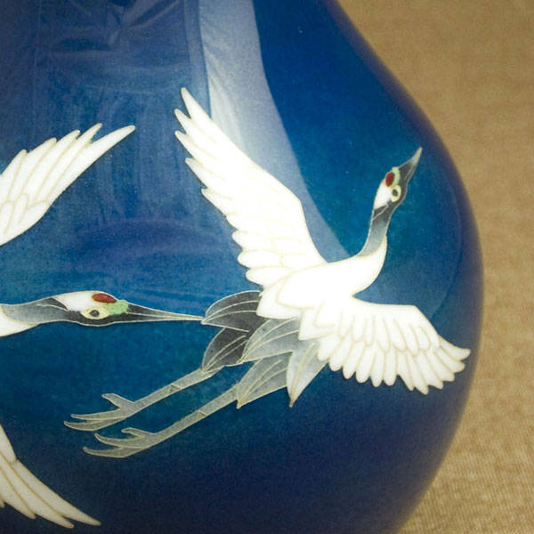 8寸首長太形 藍地双鶴 花瓶 予約受付中