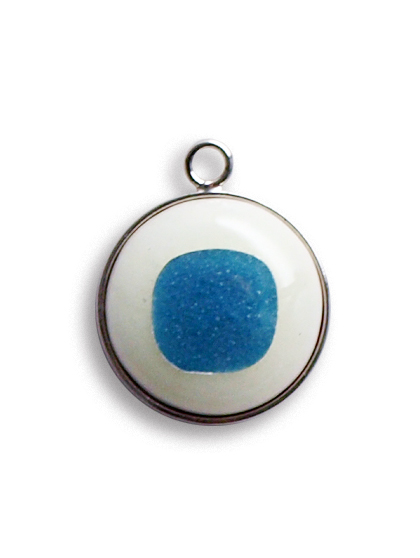 お向かい窓のペンダント。チェーンを付け、紙箱入りでお届けします。