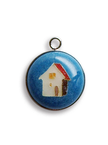 一軒家ペンダント。チェーンを付け、紙箱入りでお届けします。