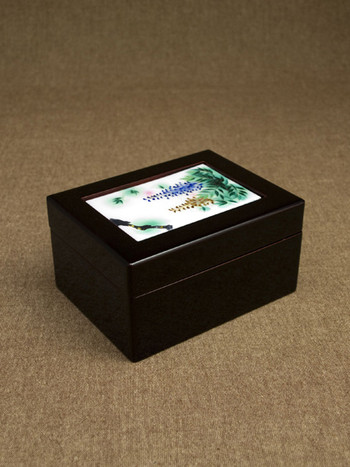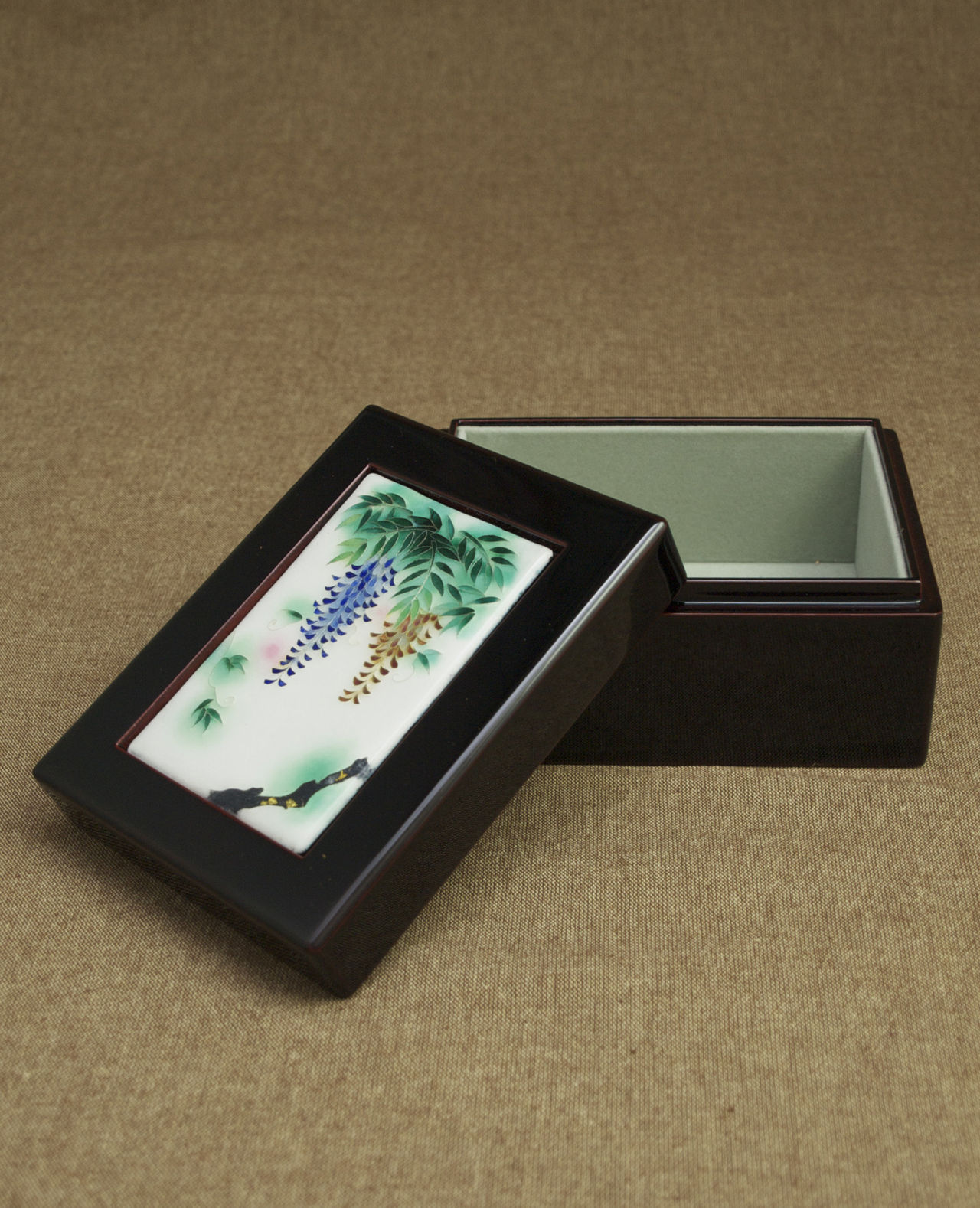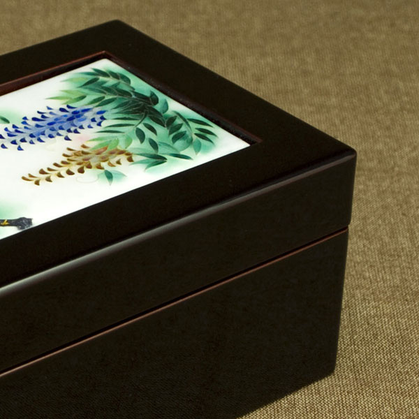 伝統的技法を惜しむことなく使った尾張七宝を、会津溜塗りの上質な小箱に組み合わせました。