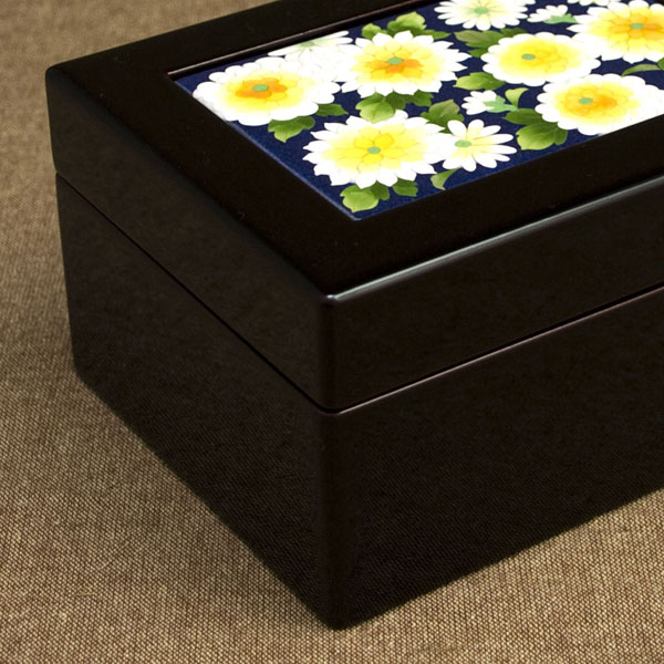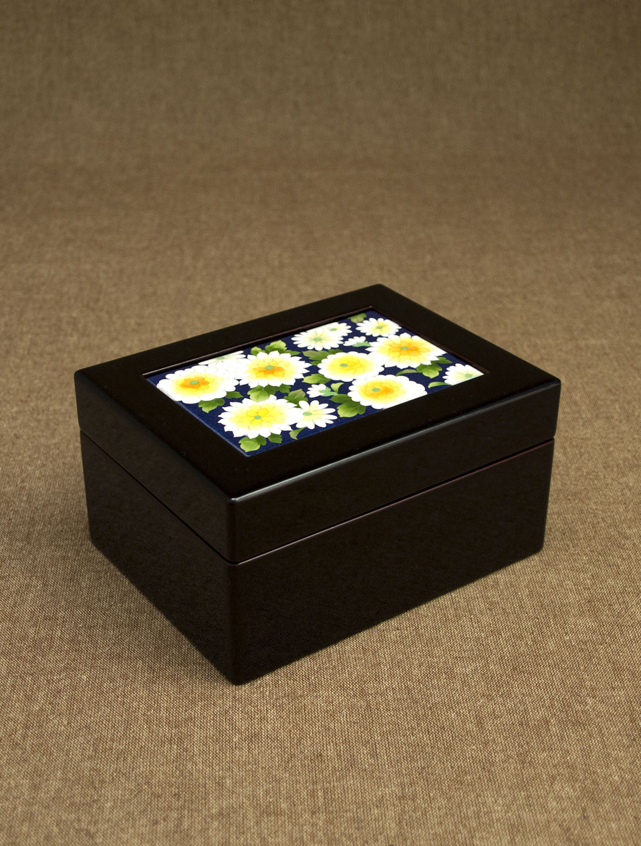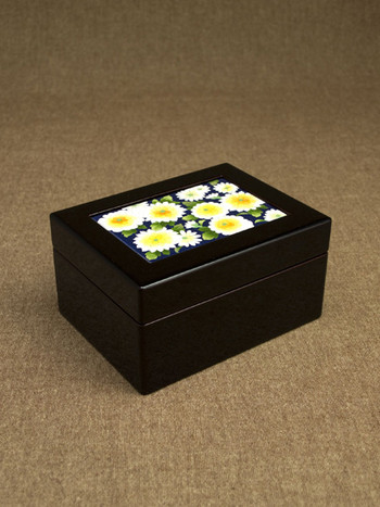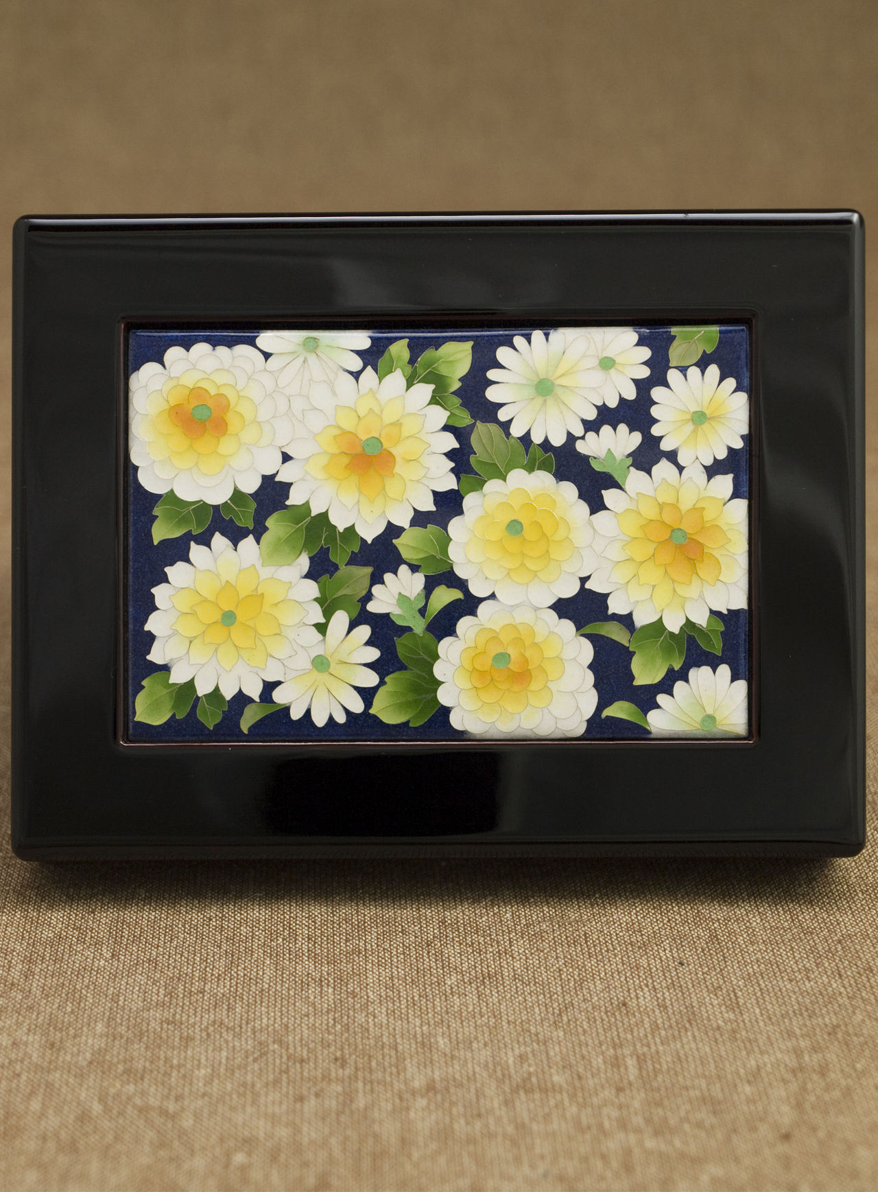 伝統的技法を惜しむことなく使った尾張七宝を、会津溜塗りの上質な小箱に組み合わせました。