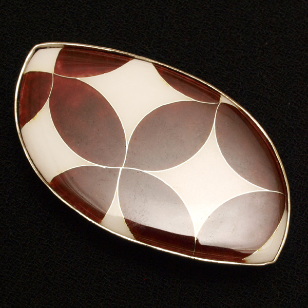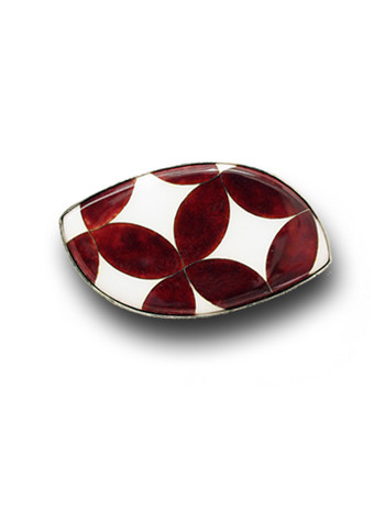 七宝繋紋をバランスよく配置し、小豆色と白のコントラストが印象的なデザインです。