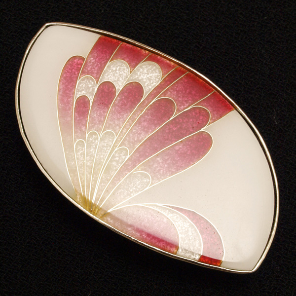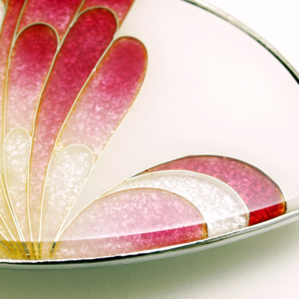 模様の輪郭線に使われる銀線と釉薬の素材感が際立つ、蝶の羽をモチーフにした作品。