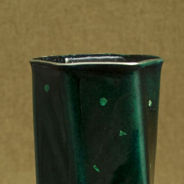 特徴的なねじりの入った六角形をした一輪挿しで、見る角度や光の当たり方などによって様々な美しい表情を見せます。