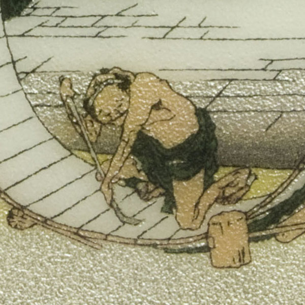 尾張七宝らしい素材感に浮世絵が融合しました。
