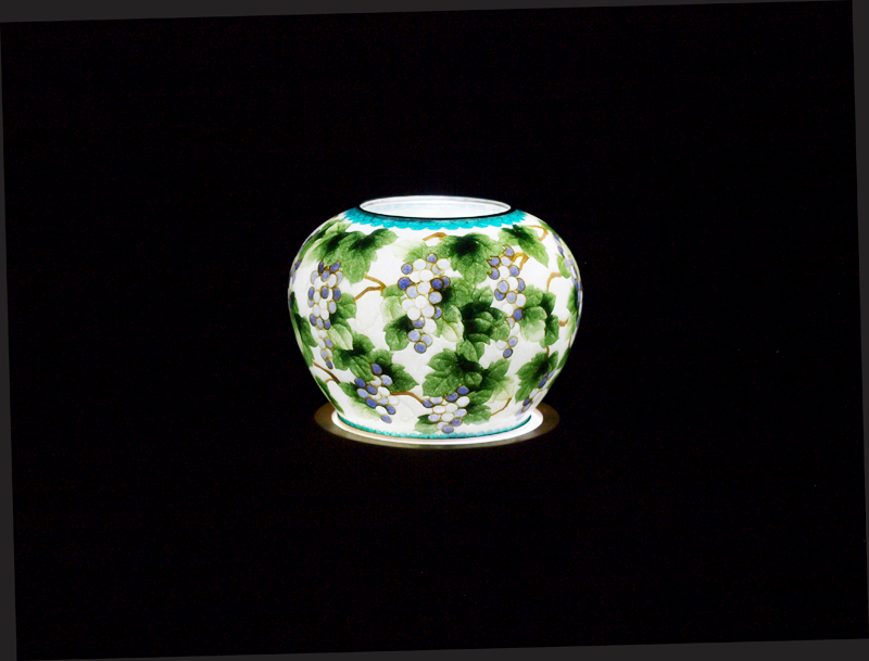 作者は、2年近くの歳月を費やし、植線、彩色、焼成方法、研磨、溶解の仕方など、あらゆる工程に工夫をこらして、その精度を高めることに成功した。専用の照光器も製作し、2つの顔を持つ七宝が完成した。