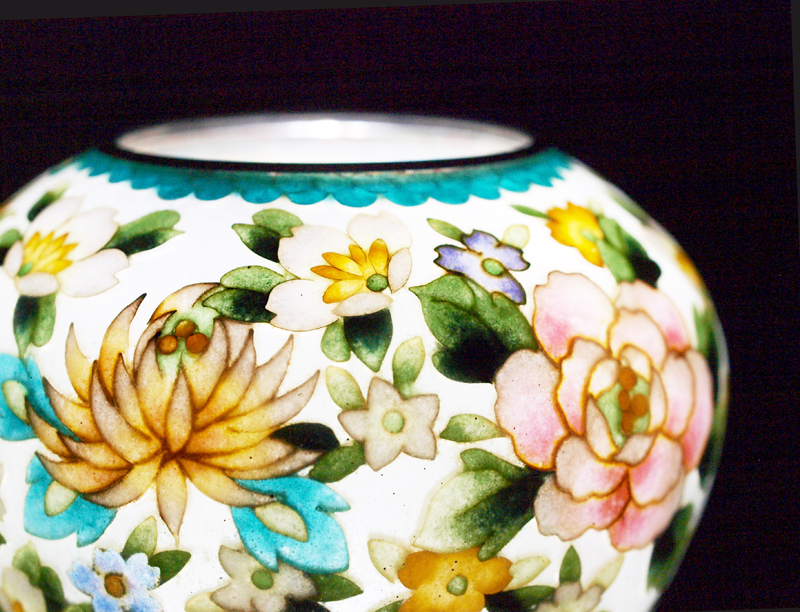 作者は、2年近くの歳月を費やし、植線、彩色、焼成方法、研磨、溶解の仕方など、あらゆる工程に工夫をこらして、その精度を高めることに成功した。専用の照光器も製作し、2つの顔を持つ七宝が完成した。