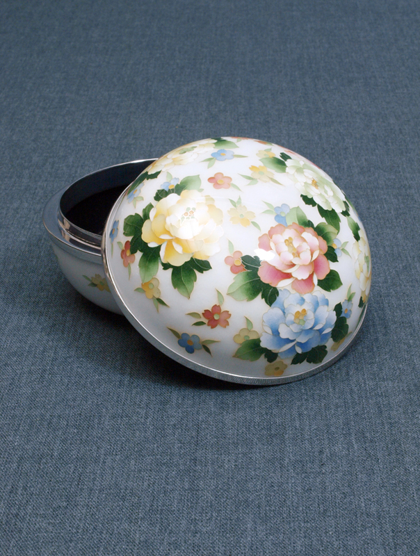 尾張七宝らしい有線七宝で緻密にそして艶やかに表現された、かわいらしさと上品さを兼ね備えた一点物作品です。