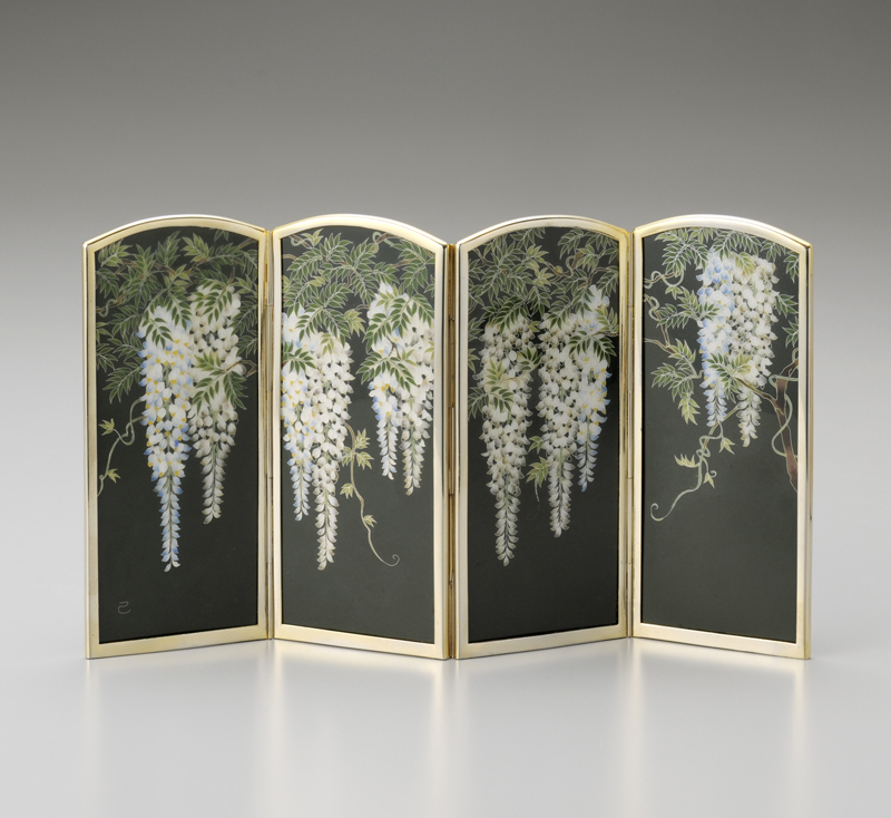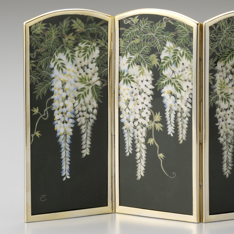 海松藍 藤文 四曲一隻屏風